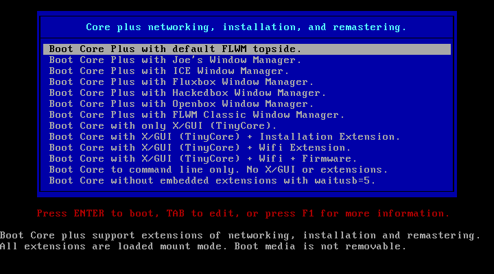 Tiny core posee tres modalidades para trabajar
