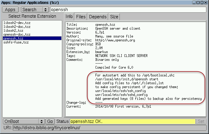 •TCZ/Install. Es similar al sistema operativo instalado comúnmente, hay que definir los archivos que serán permanentes.