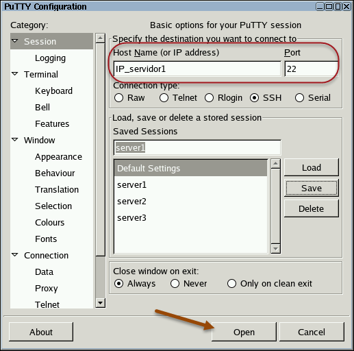 D. Configuración del servicio SSH