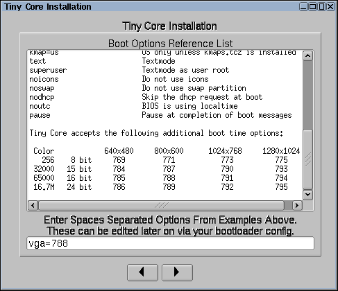 La siguiente lista de opciones se ha copiado de http://distro.ibiblio.org/tinycorelinux/faq.html#bootcodes en donde existen más opciones.