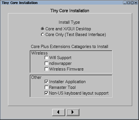 ,2 El cual es una versión de Tiny Core con opciones de teclado, Wireless y otros.