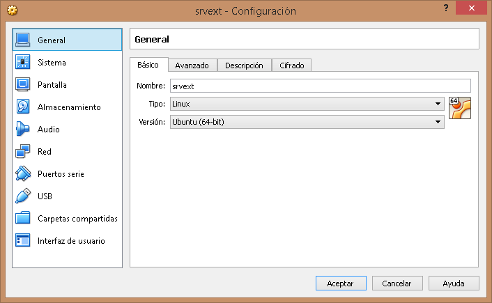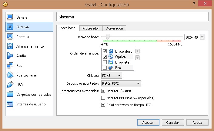 •Disco Duro tipo SATA de 10 GB con el nombre srvext.vdi