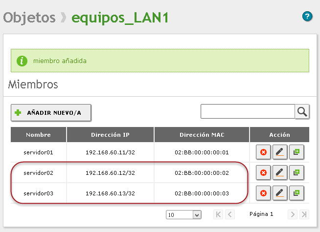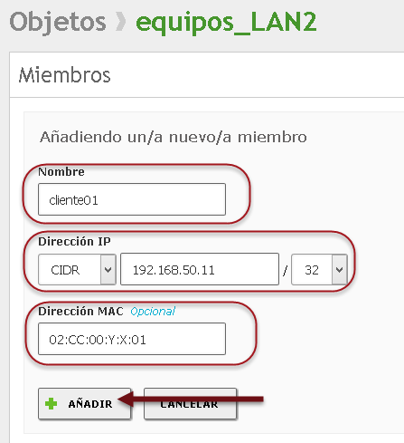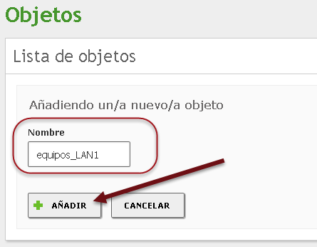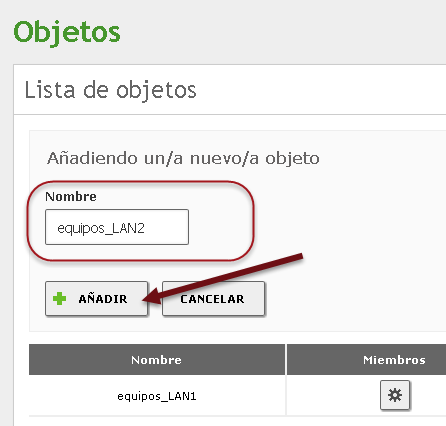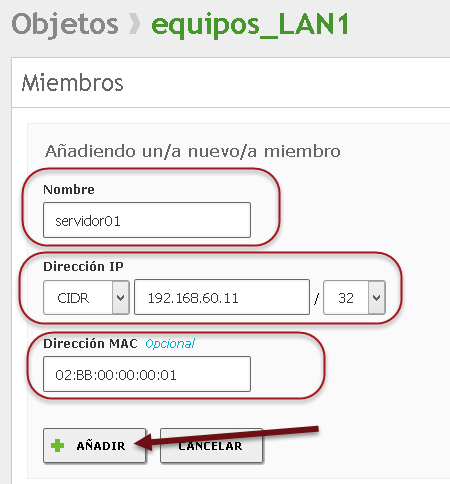 ✍Nota: El objeto equipos_LAN2 No se utilizará en el servidor DHCP para el segmento de la red LAN2 en esta guía, posteriormente este objeto se utilizará para crear reglas de seguridad en el firewall.