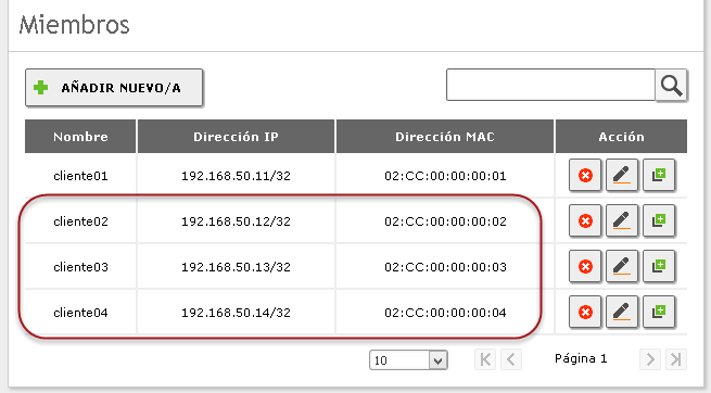 •Dirección MAC: Defina MAC del cuadro 2