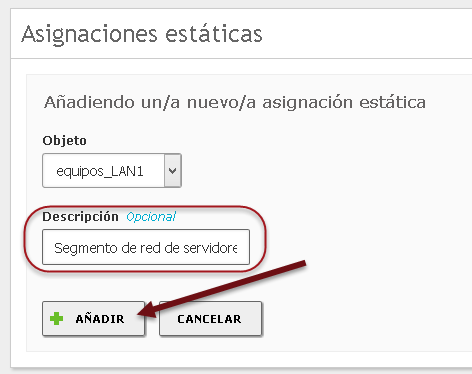•Agregar una descripción “Segmento de red de servidores”